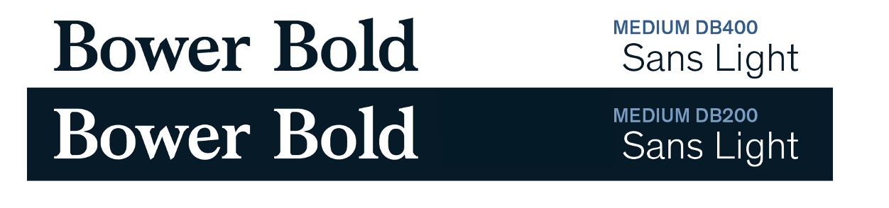 Bower Bold serves as the primary headline typeface. Its refined serif structure and editorial sophistication communicate gravitas and timelessness.